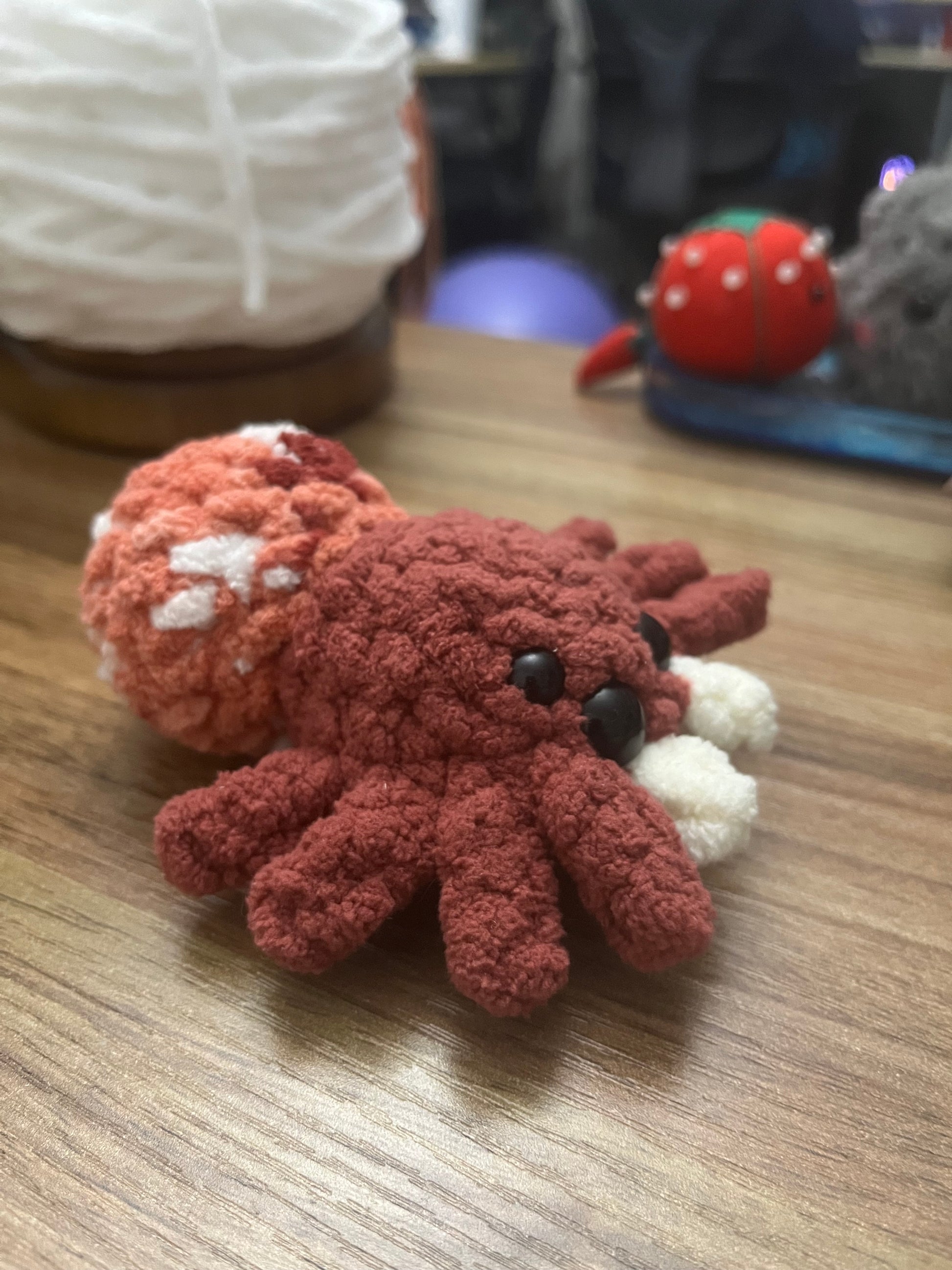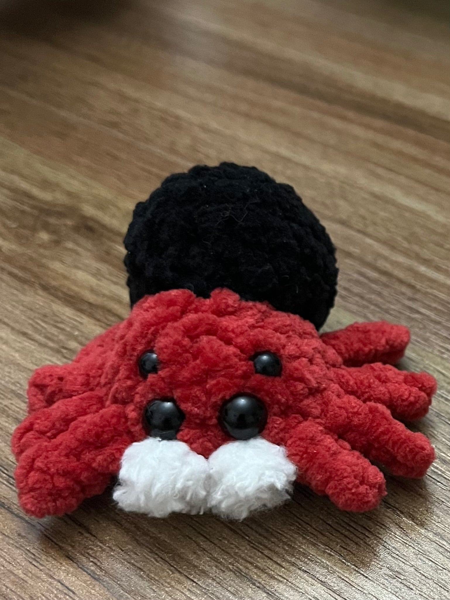 Handmade crocheted Jumping Spider plush, made with Bernat Blanket Yarn